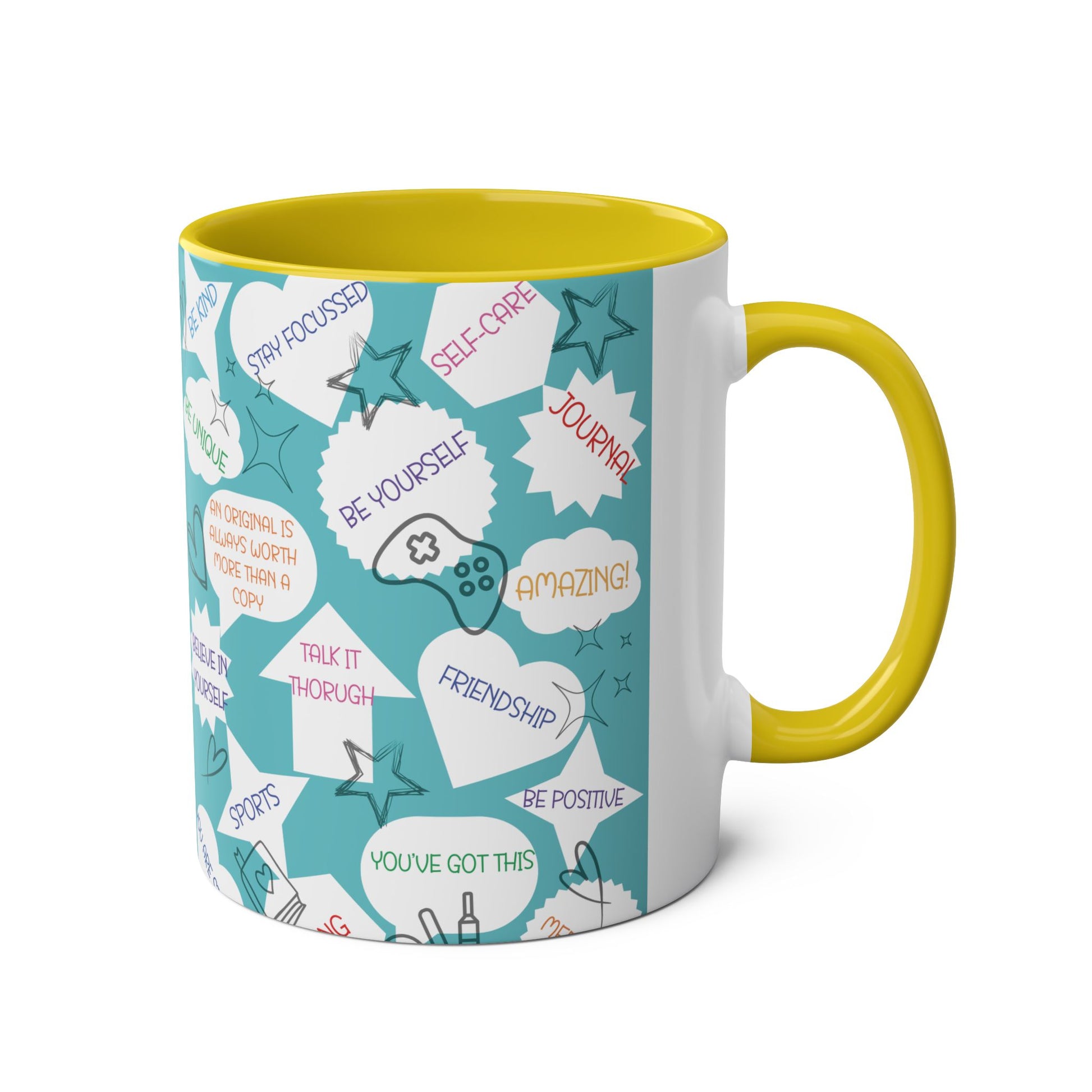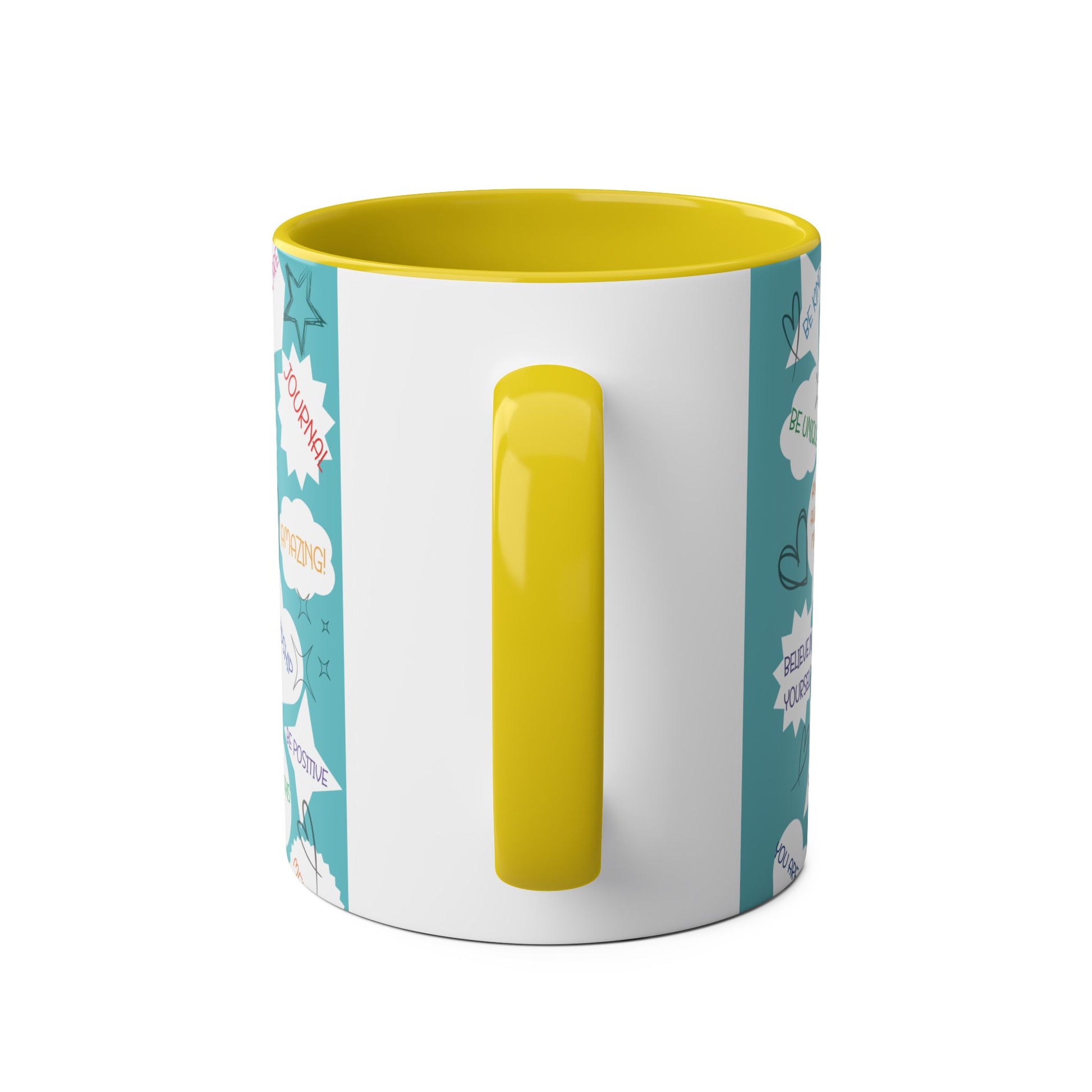 Positive Thoughts Blue Two-Tone Coffee Mugs, 11oz